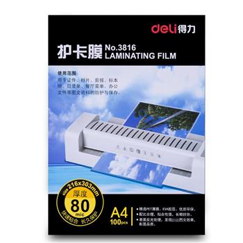 得力塑封膜 护卡膜 3816 A4 80mic 216*303MM