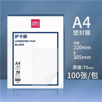 得力塑封护卡膜 3819 A4 70mic